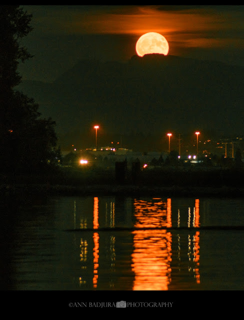 Op mijn eerste vrije dag ging ik naar Stanley Park met de hoop om nog wat herfstkleurtjes te zien. Nieuwe Iphone was 100% opgeladen en klaar om uit te testen voor wat filmpjes en wat foto’s, mijn goede camera gaat natuurlijk ook mee! Het was wel een bewolkte dag, maar daar gaf ik niet. Als ik halverwege was begon het te regenen, gelukkig heb ik altijd een paraplu in de auto. Toen ik bij Stanley Park aankwam was het gestopt met regenen en miezerde het een beetje hier en daar. Ik stopte bij de het zicht op de Lions Gate Bridge eerst want ik wou tot op de brug gaan voor de zichten op Stanley Park en de stad vanop de brug. Wat zijn die zichten toch mooi vanop de brug en de herfstkleuren waren ook van de partij. Na mijn wandel tripje op de brug was het volledig gestopt met regenen en ben ik naar Lost Lagoon gereden om daar ook even te stoppen, daar zag ik zelfs een Bald Eagle op het water zitten...maar hij ging niet zo geweldig op foto. Daarna ben ik verder naar de seawall gereden met de zichten op het centrum van Vancouver. Ookal was het bewolkt, ik heb genoten van mijn dagje met prachtige zichten en MET herfstkleuren...joepieee! Op de terugweg stopte ik bij Harmony Donuts om een doos lekkers uit te halen voor mijn kroost. Vrijdag was het poets en kook dag, we deden het rustig aan de rest van de avond want de dag erna begon mijn werk week weer en Ava had haar feestje morgen na mijn werk. Het zou morgen ook een volle "blauwe" maan zijn op Halloween en als het helder genoeg is wil ik toch wel ergens een plekje zoeken om wat foto’s te gaan nemen. Mijn werkdag verliep redelijk vlot, ik had aan mijn collega die tot 14u werkt gevraagd of ze voor mij kon blijven tot 15u zodat ik om 14u naar huis. Zo moet ik me niet haasten om Ava naar dat Halloween feestje te brengen. Ze was helemaal blij en klaar om te gaan, het begon om 15u en ik zou haar weer ophalen om 17u. Wat had ze veel plezier gehad, ze had met een spelletje een zelf gemaakte baby Yoda gewonnen, ze hadden een doos cupcakes gedecoreerd en ze had een zak met leuke spulletjes en wat snoepjes mee naar huis gekregen...zo had ze toch een beetje een geslaagde Halloween want we gingen niet van huis tot huis voor trick or treat dit jaar. Daarna aten we vlug wat avond eten, Michael ging naar zijn moeder en Ava en ik gingen naar "Sapperton Landing Park", wat hier dichtbij is met een zicht op de Fraser Rivier vanwaar ik hopelijk die volle maan zou kunnen zien. De zon ging onder om 17u51 en de maan zo om 18u16 opkomen. Ava had wat glow sticks mee gebracht die ze op het feestje had gekregen in geval het te donker zou worden voor haar. We werden eerst getrakteerd op kalm water en een prachtige zonsondergang voordat het donker werd en we de maan langzaam boven de bergen zagen uitkomen. Wat een spectakel, maar toch redelijk moeilijk om mooi vast te leggen met de camera omdat het toch al redelijk donker was. Maar ik heb toch een paar mooie foto’s kunnen nemen waar ik zeer tevreden over ben! We gingen voldaan weer terug naar huis en zo is de maand oktober ook weer om. Tot nu toe nog steeds coronavrij op mijn werk en ik hoop dat ik in november hier en daar weer een extra dagje vrij kan nemen. Ik zal mijn collega eens moeten contacteren of ze ter beschikking is voor een paar van mijn diensten. Tot het volgende blogje weer!