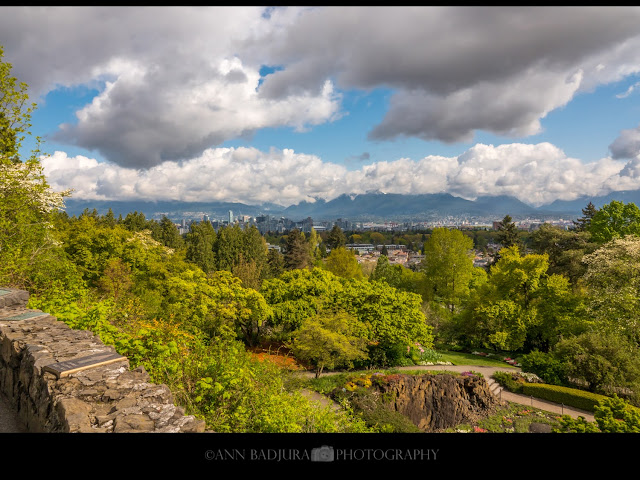 Als het dan weer eens een natte dag was heb ik een grote portie chicken chow mein gemaakt, dus kan weer even verder. Ik geef daar dan ook wat van aan mijn schoonmoeder, dan heeft zij ook een paar maaltijden dat ze gewoon vlug kan opwarmen. Tussen het grillige weer door ben ik een paar dagen later naar Vancouver gegaan om daar een paar plekjes te bezoeken. Het is een redelijk natte en frisse lente tot nu toe met weinig warme dagen, normaal hebben we al eens dagen van 20-25 graden in april en mei...maar dit jaar helemaal niet en ik geloof dat we nog maar net de 15-16 graden hebben gehaald tot nu toe. Ik ging naar Queen Elizabeth Park waar ik genoot van de mooie zichten op downtown Vancouver en de mooie bloemetjes die al aan het bloeien waren. Daarna wilde ik naar Kitsilano Beach gaan en parkeerde daar op een straat dichterbij het Maritime Museum en Vanier Park, dus ik besloot om door Vanier Park heen te wandelen en dan zo met een ommetje naar Kitsilano Beach te wandelen en terug naar de auto. Als ik door Vanier Park liep kwamen de bergen wat te voorschijn en daar was nog sneeuw gevallen zo te zien. De lokale bergen zijn ook nog open tot 15 mei voor het ski seizoen, nog nooit meegemaakt sinds ik hier woon dat ze zolang open zijn voor wintersport. Meestal is het ski seizoen begin april gedaan. Hopelijk warmt het niet te snel op want dan gaat die sneeuw te snel smelten en dat kan wel eens overstromingen veroorzaken. We hebben zoveel sneeuw gehad op onze lokale bergen tot nu toe en het is daarboven nog koud genoeg voor meer sneeuw!