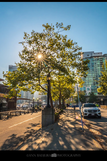We hadden ook nog een mooie zonsondergang op 1 van de avonden. Goh, er lijkt wel geen einde te komen aan de zomer en we hebben nog steeds redelijk warm (20-25graden) en zonnig weer. En er is nog geen einde in zicht van dat mooie weer. Daar moest ik toch van gaan genieten en ik besloot om naar Coal Harbour in downtown Vancouver te gaan en daarna zou ik ook Stanley Park gaan bezoeken. Eens kijken of er al wat herfstkleurtjes te bespeuren zijn, het is erg vroeg maar soms zijn er hier en daar al wel wat bomen die beginnen te kleuren. Het was heerlijk bij Coal Harbour met prachtige zichten en heerlijk weer. Na hier wat rond te lopen en foto’s te nemen ging ik verder naar Stanley Park. Daar zijn de zichten altijd prachtig op de stad en het water. Hier en daar zag ik al wat gekleurde blaadjes, heerlijk! Die mooie boom bij Brockton Point is meestal ook altijd vroeg aan het kleuren en dat was dit jaar ook weer het geval, prefecte timing voor wat mooie foto’s en vooral als er een fietser(s) voorbij kwamen. Ik heb genoten van mijn uitstapje en na hier wat mooie foto’s te nemen was ik weer op weg naar huis...maar niet zonder even bij Harmony Donuts te stoppen voor een doosje donuts voor ons. Daar waren ze thuis natuurlijk heel blij mee want het is alweer een tijd geleden dat ik daar nog was. In het weekend gingen we met Ava naar een speciale Halloween winkel, ja hier vind je elk jaar een winkel die niets anders verkoopt dan Halloween kostuums en attributen. We keken wat rond voor Ava voor een Halloween kostuum, maar we hebben nog niets gevonden. Gelukkig hebben we nog een maand de tijd om wat te vinden. Die winkel had zovele dingen met bewegende poppen en dergelijke, geweldig om er door te lopen en rond te kijken. Hopelijk vinden we wel iets leuks voor haar. Ze zou een soort boogschutter willen willen zijn, dus boog en pijlen met een groene of zwarte cape met kap eraan. We kijken nog even rond en hopelijk vinden we de juiste kledingstukken voor haar. En ja, je raadt het wel weer want we komen zo aan het einde van deze maand.