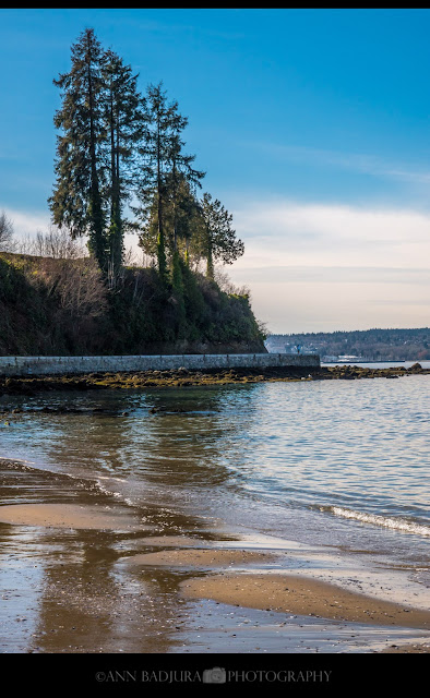 Maart begon maar traagjes, niet veel te beleven en ik ben ook nergens geweest in de eerste dagen want het was een grote soep door al de sneeuw die volop aan het smelten was terwijl het regelmatig regende. En omdat Sadie ook nog wat hoestte door de kennelhoest kon ik met haar ook nog nergens naartoe. We gingen dus maar voor een kort wandelingetje rond de blok en weer terug. Tijdens onze wandelingetjes hier in de buurt met Sadie zagen we hier en daar al wat bloemetjes in bloei zoals sneeuwklokjes en krokussen. De lente komt er stilletjes aan, heerlijk want van al die sneeuw hebben we nu wel genoeg! We hadden eindelijk wat dagen met zonniger weer en zo een 10 tot 12 graden, daar moest ik toch van profiteren. Sadie had de laatste 2 dagen ook niet meer gehoest, dus dan kon ik er met haar ook weer op uit gaan, dus ik besloot om samen met Sadie naar Stanley Park te gaan met de hoop dat ze het zo goed zou doen zoals de vorige keer toen ik met haar naar Queen Elizabeth Park en Kitsilano Beach ging. Gelukkig is Sadie erg goed in de auto voor langere tijd, dus dat maakt het in elk geval aangenaam om haar mee te nemen. Mijn eerste stop was bij Prospect Point met een mooi zicht op de Lions Gate Bridge en de bergen die er zo mooi bij lagen met nog een laagje verse sneeuw op de toppen. Het zicht op de Lions Gate Bridge en de bergen van deze plek is altijd zo mooi. Sadie deed het goed, ze bleef rustig bij me en ik denk dat het ook helpt met haar hesje aan. Na een bezoekje daar reed ik verder naar Third Beach, ik parkeer dan altijd op de overflow/additional parking. We liepen de trappen naar beneden en zo het strand op, heerlijk was dat om daar te wandelen en te genieten van de mooie zichten. Nadat ik hier een tijdje rond wandelde ging ik weer verder en deze keer naar de andere kant van het park met de zichten op het centrum van Vancouver. Toen ik Sadie uit de auto wilde laten opende ik mijn deur en toen ik naar haar leiband greep stuiterde de deur terug en recht tegen mijn gezicht net boven mijn lip, auw!!! Dat deed pijn en ik dacht zeker dat mijn tanden door mijn lip heen waren, haha...zo voelde dat aan op dat moment! Ik voelde precies een diepe kloof boven mijn lip, maar gelukkig bloedde het niet veel.