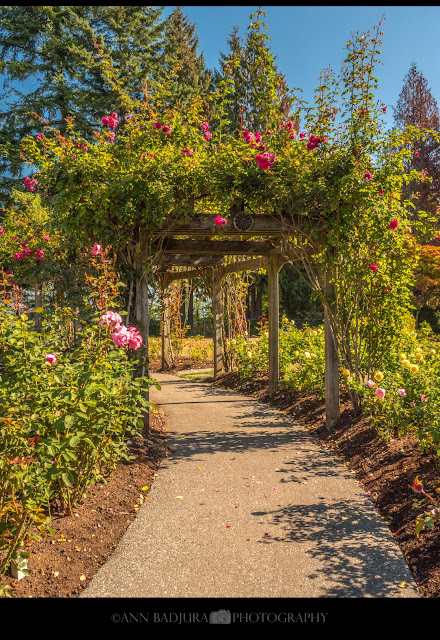 We hadden de komende dagen ook nog een paar keer afgesproken met Scout en Lynn zodat de hondjes af en toe wat konden spelen. Verder hebben we onze gewoonlijke wandelingen gedaan en verder niets bijzonders die week. Aan het einde van de week hadden we weer mooie zonnige dagen en ik wilde zo graag toch nog eens naar Stanley Park gaan om te zien of er al wat herfstkleurtjes te bespeuren zijn. Jammer genoeg wilde het verkeer niet meewerken en als ik dan via google maps ging kijken hoelang het was om naar Stanley Park te rijden, dan was het telkens een 50-55 minuten en dat om 10u 's morgens. Ik had echt geen zin om bijna een uur in het verkeer te zitten voor een trip die met een stuk minder verkeer maar 25 minuten is. Ik wachtte dan maar af tot de volgende dag en jammer genoeg was het toen weer van hetzelfde, dan maar een alternatief zoeken. Ik ben dan naar Deer Lake gegaan en na hier wat rond te wandelen en al wat herfstkleurtjes te zien ben ik naar Burnaby Mountain Park gereden, daar begon het ook al een klein beetje te kleuren. De rozen stonden daar nog volop in bloei, wat mooi. Ik heb hier nog een rondje gewandeld voordat ik weer naar huis ging want ik voelde me precies niet zo lekker. Gelukkig was ik nu niet ver van huis en was ik blij dat ik niet naar Stanley Park was geweest, want een half uur rijden als je je niet zo goed voelt is ook niet aangenaam. En het is toch ook mooi om de kleinere lokale plekjes te bezoeken, daar geniet ik net zoveel van. Stanley Park lukt hopelijk volgende maand dan wel eens. De dag erna had ik normaal klas met Sadie alsook mijn hart revalidatie in de namiddag, maar ik heb beiden afgezegd omdat ik me niet zo lekker voelde.