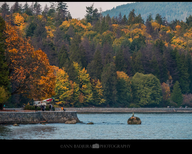Het weekend was weer aangebroken en het is weer een verlengd weekend want maandag is het Thanksgiving Day en dat is een betaalde feestdag. Ava en Michael zouden dan ook thuis zijn en ik was van plan om een kalkoen gebraad te maken in de slow cooker (Crock-Pot) met een groentesaus, slaatje, erwten en puree. We zijn zaterdag dan nog gaan winkelen om wat benodigdheden te kopen voor mijn Thanksgiving maaltijd. Ik had in de namiddag mijn groenten al gesneden en zou het zondag ochtend in de crock pot zetten, zodat het een goede 4-5 uren kan sudderen. Het plan was om die zondag in de voormiddag met Ava naar Stanley Park gaan, Michael bleef thuis met de honden en deed nog wat werk in de tuin en ging ook met de honden wandelen. Ik had 's morgens voor we vertrokken eerst alles in de slowcooker gedaan zodat mijn kalkoen gebraad klaar was als we terug thuis waren. We vertrokken rond 9u45 en waren rond 10u10 stonden we in Stanley Park, het verkeer was prima en dat vonden wij fijn! We stopten eerst bij Prospect Point waar je een zicht hebt op de Lions Gate Bridge, North Vancouver, West Vancouver en de zee. We liepen daarna naar een brug over Stanley Park Drive waar je ook een mooi zicht hebt op de Lions Gate Bridge. We vonden onderweg langs de kant van het voetpad een deel prachtige grote espen bladeren met gelige en groene kleuren. Ava raapte er een paar op en gaf ze namen, haha dat vond ik best grappig. Ik nam een paar foto's van haar met die grote bladeren en gebruikte er ook eentje bij het zicht op de Lions Gate Bridge als voorgrond. Daarna gingen we verder naar de omgeving waar je zichten hebt op de stad Vancouver en Coal Harbour, daar waren al wat bomen heel mooi gekleurd langs de seawall. We gingen dan nog verder waar de totem palen waren en liepen daar ook naar de souvenirwinkel om even rond te kijken en verder naar de zichten op de Lions Gate Bridge vanaf de seawall. Zo mooi allemaal met al heel wat mooie herfstkleurtjes die te zien waren. Het was een goede 22-25 graden gisteren en vandaag met veel zon, heerlijk. Daarna stopten we op de laatste plek voor vandaag aan de mooie boom bij Brockton Point. Er waren hier een paar families een fotoshoot aan het doen met hun kindjes en ik kon dus de hele boom niet op foto krijgen zonder mensen erin...ach, dat geeft niet want het was zo ook heel mooi. Ik heb er toch nog wat van kunnen maken en heb een paar leuke foto's kunnen nemen. Daarna was het tijd om naar huis te gaan, want na bijna 2 uur daar rond te slenteren was het wel weer genoeg geweest. Ava en ik hadden een hele fijne ochtend samen, daar zullen we nog maar even van genieten voordat ze misschien niet meer mee wil komen.
