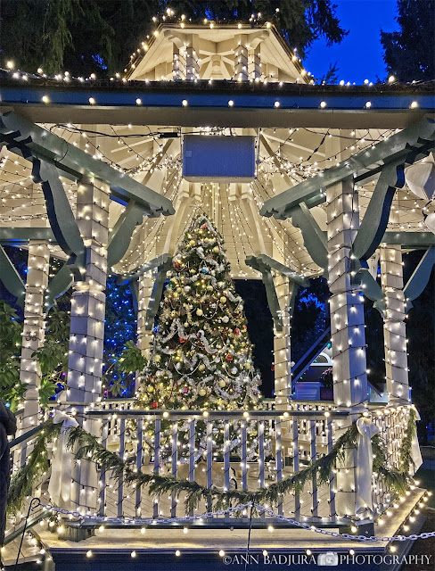 Ik wilde graag toch nog ergens iets beleven met Kerstversiering en lichtjes, dus we besloten om die avond naar het Burnaby Village Museum te gaan. Dat is zo een 10 minuten rijden van hier en het is een gratis evenement met mooie Kerstversiering, een oud dorp wat tot leven komt. In 1 van de gebouwen is een oude apotheek, eentje waar ze ijzerbewerkingen, een oud schooltje en een gebouw waar je de Kerstman kon bezoeken en op bepaalde tijdstippen zingt er een koor Kerstliedjes. Er is ook een cafe/restaurant, een food truck en nog veel meer. We gingen net voordat het donker werd, want het was zaterdag en een droge dag...dus dan zou het best wel eens druk kunnen worden. We hadden nog net een parkeerplekje gevonden in de buurt van het museum bij het meer en moesten een stukje wandelen tot aan het museum. Er was al redelijk wat volk te zien en nu gingen we hier rustig wat rond slenteren om te wachten tot het donker genoeg was om te genieten van al die mooie verlichting en kerstversiering. Wat was het daar mooi met al die lichtjes, we hebben er heerlijk van genoten en liepen een paar rondjes in het dorpje en er rondom. We wilden best wel even gaan piepen bij de Kerstman, maar er was zo een lange wachtrij dat we dat maar niet gedaan hebben. We kwamen regelmatig de heerlijke geur van popcorn tegen en zijn dan even gestopt bij de food truck die popcorn en suikerspinnen verkocht (wel in doosjes). Ava wilde zo graag suikerspin en Michael kocht popcorn. Beiden waren heel lekker, alhoewel ik zelf alleen maar wat van de popcorn geproefd heb. We liepen hier nog een tijdje rond om van de lichtjes te genieten voor we weer naar huis gingen. Het was een gezellig avondje!