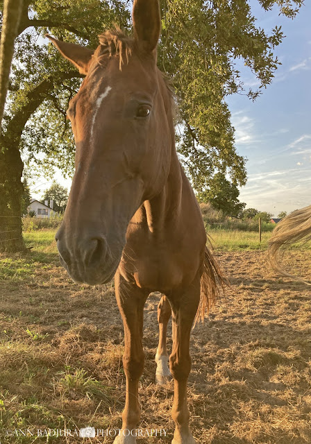 We hadden voordat we aan onze reis begonnen van alle plannen om naar de zee te gaan, naar de Ardennen, Luxemburg ofzo...maar dat is er niet meer van gekomen want na het reizen naar Zwitserland hadden we niet veel zin meer om nog dagtrips te doen en onze dagen waren ook redelijk gevuld met bezoek aan familie/vrienden. Verder zijn we hier en daar wat gaan winkelen en daar genieten we ook van omdat we andere dingen in de winkels vinden vergeleken met de winkels in Canada. Zaterdag waren we in de voormiddag een vlaai (taart) gaan uithalen bij de bakker want mijn broer ging in de namiddag nog langskomen voor een paar uurtjes met mijn schoonzus en hond om afscheid te nemen. Ja, het gaat snel want nog een 2 dagen en we zijn alweer op weg naar Amsterdam. Rond 15u kwamen mijn broer en schoonzus langs en we hebben nog gezellig gekletst. We aten een stukje vlaai met een tasje koffie en daarna was het weer tijd voor hen om naar huis te gaan. Het was weer fijn om hen te zien en daarna namen we afscheid en we zullen zeker contact houden, dat gaat allemaal gemakkelijk tegenwoordig. We gingen die avond nog een keertje naar de paarden, want het is misschien wel de laatste keer. Hossy kwam naar ons toegelopen, hoe lief! Flossy was niet zo geïnteresseerd, maar daar geven we niets om want Hossy was zo lief! Ava denkt dat Flossy zwanger is omdat haar buik precies nogal rond lijkt. Ik zal in de toekomst eens aan mijn mama moeten vragen of er een veulentje bij hen in de wei loopt.